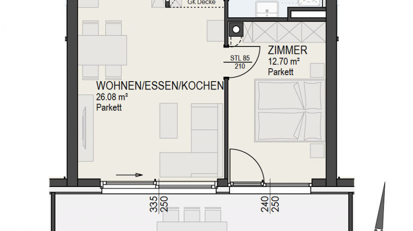 Das Penthouse kombiniert stilvolles Design mit maximalem Wohnkomfort – ideal für alle, die hochwertiges und ruhiges Wohnen schätzen.